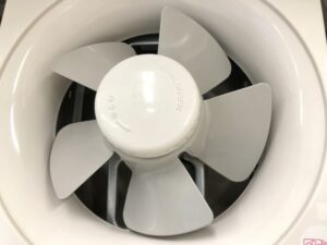 プロペラファンは比較的シンプルな構造ですが、古いタイプは部品が劣化している可能性があります。 プラスチック部分が経年劣化で脆くなっている場合は、力を入れすぎると破損する恐れがあります。 また、モーター部分は防水仕様ではないため、アルカリ電解水が直接かからないよう注意が必要です。